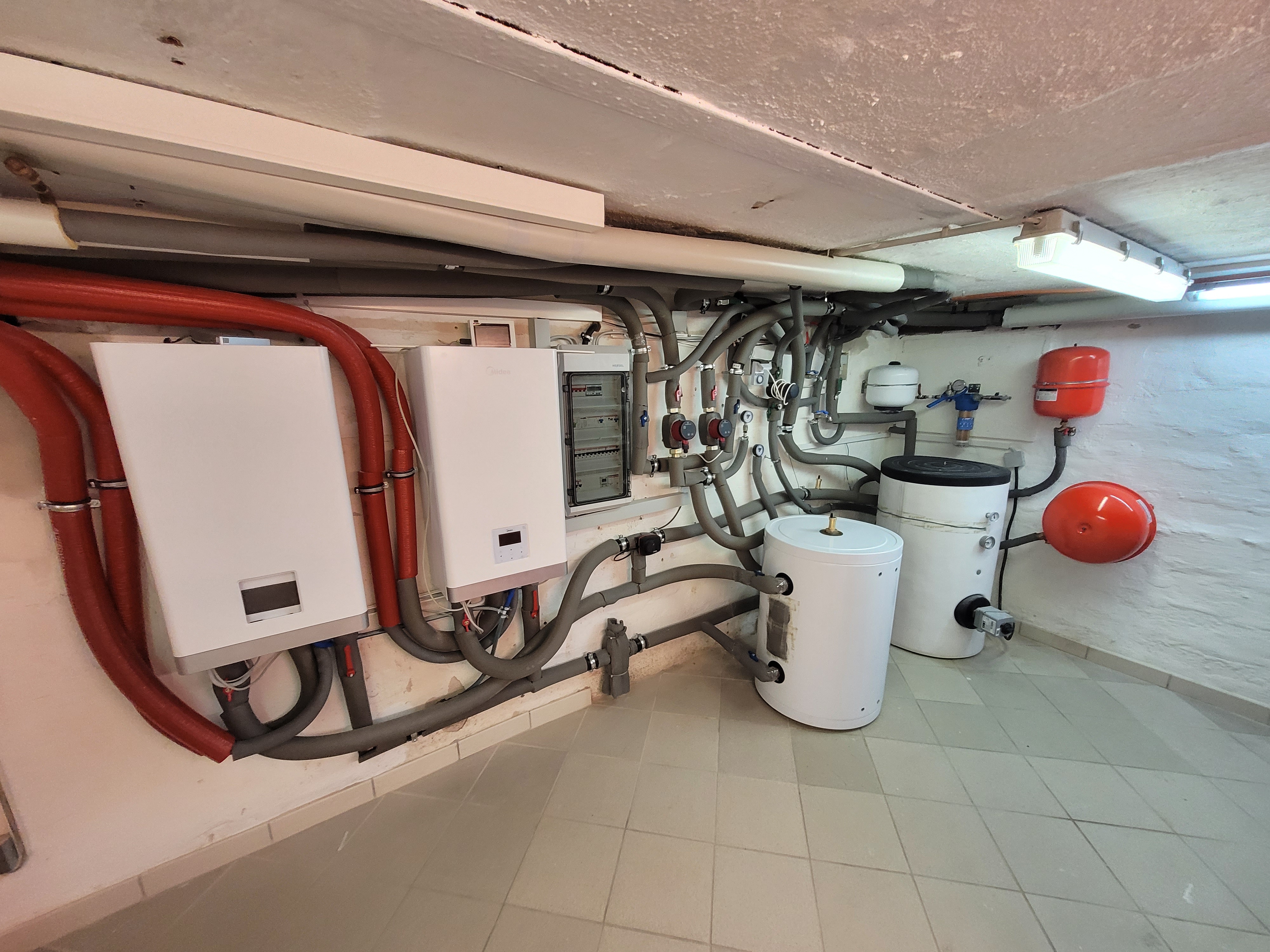 Typischer Innenaufbau bei Split Anlage neuer Warmwasser- und Pufferspeicher