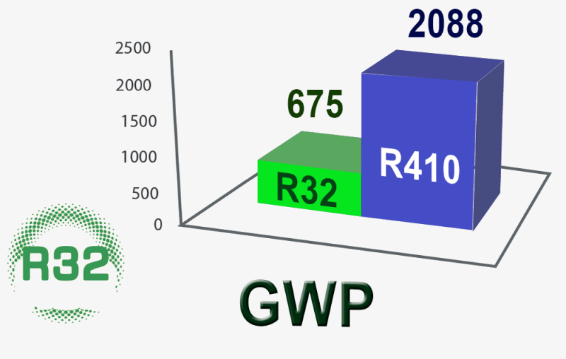 R32 wurde als Kältemittel eingeführt, da die EU das GWP Potential der benutzten Kältemittel reduzieren möchte, um der Klimaerwärmung entgegen zu steuern. Das bisher meist verwendete R410 besitzt ein GWP von ca. 2000, das R32 einen von 675.