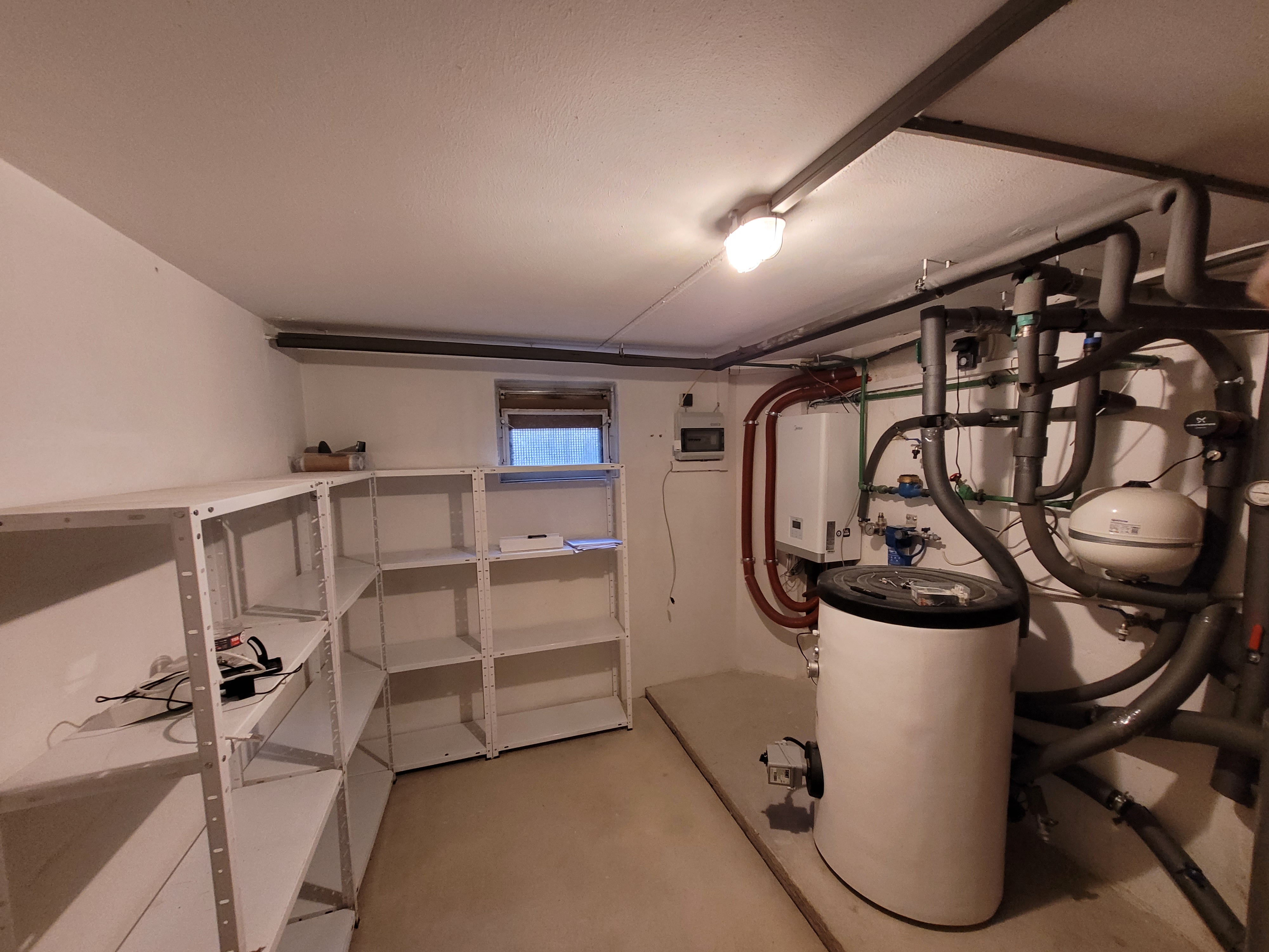 Typischer Innenaufbau bei Split Anlage neuer Warmwasser- und Pufferspeicher